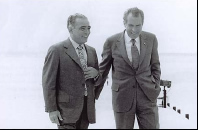 The beach crowd had thinned. Cocktail hour, time to go in for pre-drink drinks. Smeg and I were at the head of steps leading down from the veranda when a couple of Secret Service agents took the stairs two at a time up toward us. If you spend time in Washington, you know them a mile away. They knew Smeg and I was with Smeg, they were lax and sweaty, so we waited, and sure enough struggling up the sand, which was smooth but they made it look as if they were crossing a plowed field, four men: Robert Vesco, Bebe Rebozo, Henry Kissinger,  and Richard M. Nixon, president-elect. As if they’d risen from the sea in a B-movie, Nixon in a dark suit and tie, the others more casual, Rebozo in a guayabera, all of them out of place as polar bears. As they approached the wood stairs, Kissinger said something to Nixon about “the Cabinet.” Rebozo said, “Don’t give the jungle bunnies nothing, Dick.” Nixon turned toward him. “Who’s there to give it to, Bebe? We shot fuckin Martin Luther Coon.” We, I swear it, he said we. He stumbled on the bottom step, Kissinger came forward, offered him his arm, “Let me help you, Mr. President.” Nixon winced as he passed us, which was, I think, some recognition we were there, the rest paid no attention.