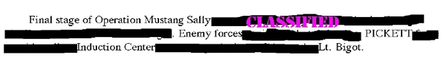 WILSON PICKETT (code name CM) boarded safely at Redding, took window seat, initiating series of events that can only be described as darn peculiar. Recruits on bus refused to sit in seat next to CM (aforementioned Pickett). Reactions of fear, disgust directed not at CM but at empty seat. Incoherent responses to Bigot’s inquiries, “I dunno, chief,” “strange shit” etc. Becoming impatient, Bigot ordered one recruit to sit there, who responded “I ain’t in the Army yet, man, you sit there,” arousing concern of outright rebellion. The lieutenant approached seat, reported feeling something “I can’t just put in words,” declared to riders that for security reasons the seat would remain unoccupied.