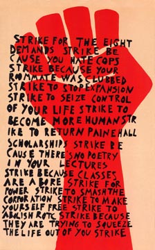 “Unsuccessfully,” he replied to both questions. Behind Cathy hung a poster from a college on strike: