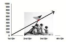 “Getting there. We, Los Good Guys, fail to enter the fray until, say, the beginning of the 2nd Qtr.” He drew a second line.